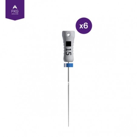 Les limes K 154, de la marque Kerr, sont des instruments endodontiques utilisés pour l'exploration et la préparation des canaux radiculaires. Elles sont disponibles en différentes tailles et longueurs, notamment en taille 15 et longueur 31 mm. Ces limes sont fabriquées en acier inoxydable, offrant une rigidité supérieure aux forets, ce qui les rend adaptées pour la perméabilisation et la mise en forme des canaux.